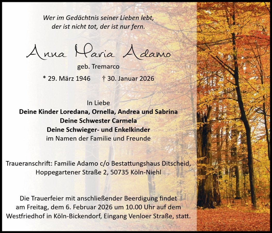 Mein aufrichtiges Beileid und tiefes Mitgefühl. Viel Kraft in der schweren Zeit.