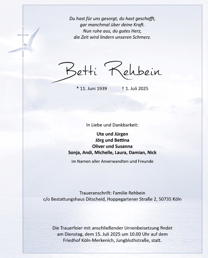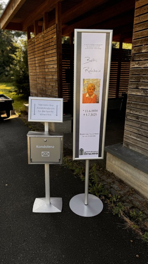 Leider können wir bei der Trauerfeier für Betti nicht dabei sein.