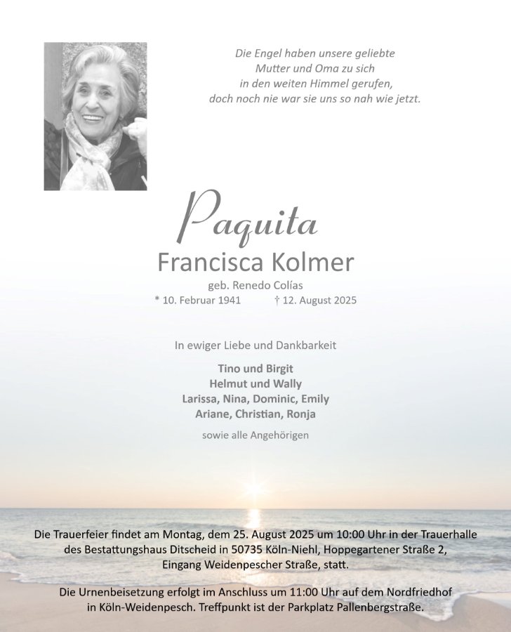Francisca „Paquita“ Kolmergestorben am 12. August 2025