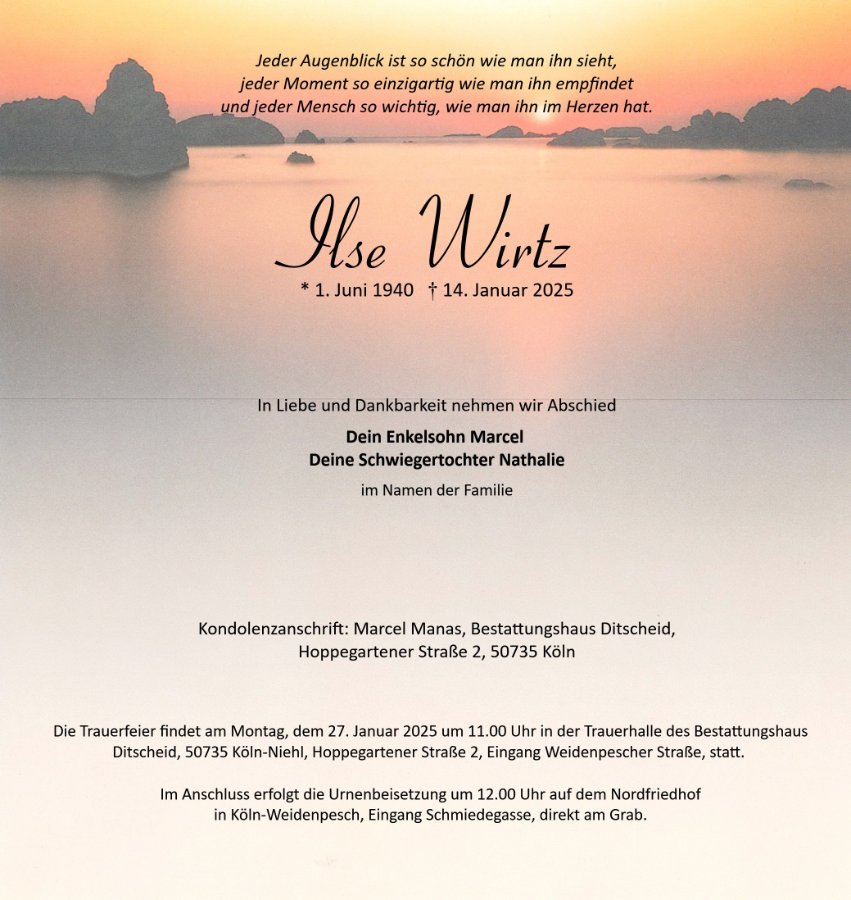 ich wünsche euch von herzen ganz viel kraft und ilse eine gute reise. sie ist mit liebe gegangen und wird mit liebe empfangen von denen, die schon dort sind <3