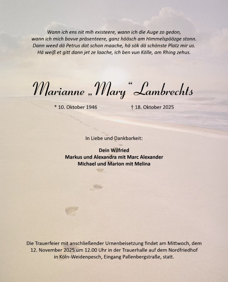 Marianne "Mary" Lambrechtsgestorben am 18. Oktober 2025