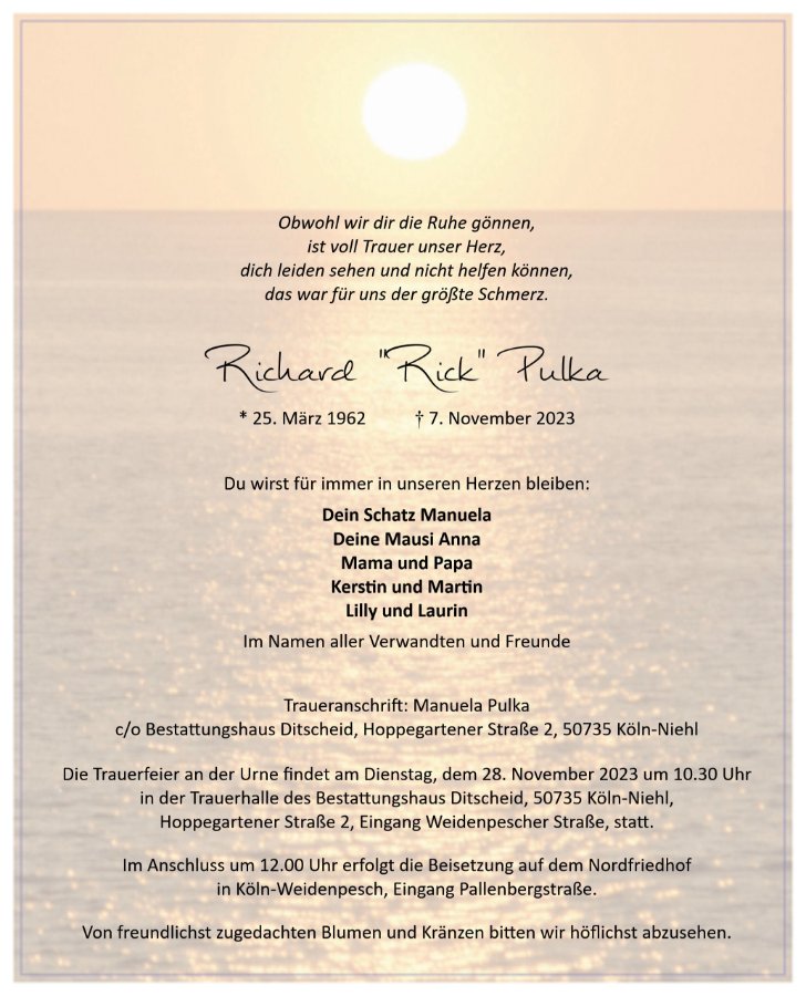 Wir werden Rick immer in liebevoller Erinnerung behalten.